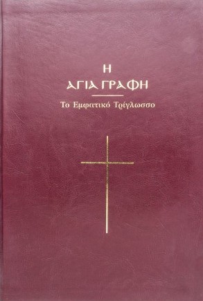 Παλαιά Διαθήκη: Η παρούσα έκδοση περιλαμβάνει τις τρεις υπάρχουσες μεταφράσεις του αρχικού κειμένου στην Ελληνικη: α) τη μετάφραση Βάμβα, β) τη μετάφραση των Εβδομήκοντα και γ) τη δημοτική μετάφραση του Σπύρου Φίλου, με παρεμβάσεις Λούβαρη και Χαστούπη.