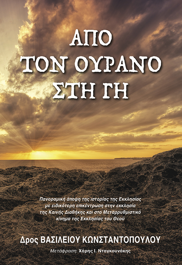 Στο τελευταίο του βιβλίο Από τον Ουρανό στη Γη – Πανοραμική Ματιά στην Ιστορία της Εκκλησίας, ο συγγραφέας Δρ Βασίλης Κωνσταντόπουλος, εργάτης του ευαγγελίου στην εκκλησία του Θεού, που τόσο την αγαπάει, μας προσφέρει έναν πολύτιμο θησαυρό. Προσεγγίζει το θέμα του με τη βαθιά επιθυμία να δει την Νύμφη του Ιησού Χριστού να ξαναβρίσκει την παλιά της δύναμη και δόξα.