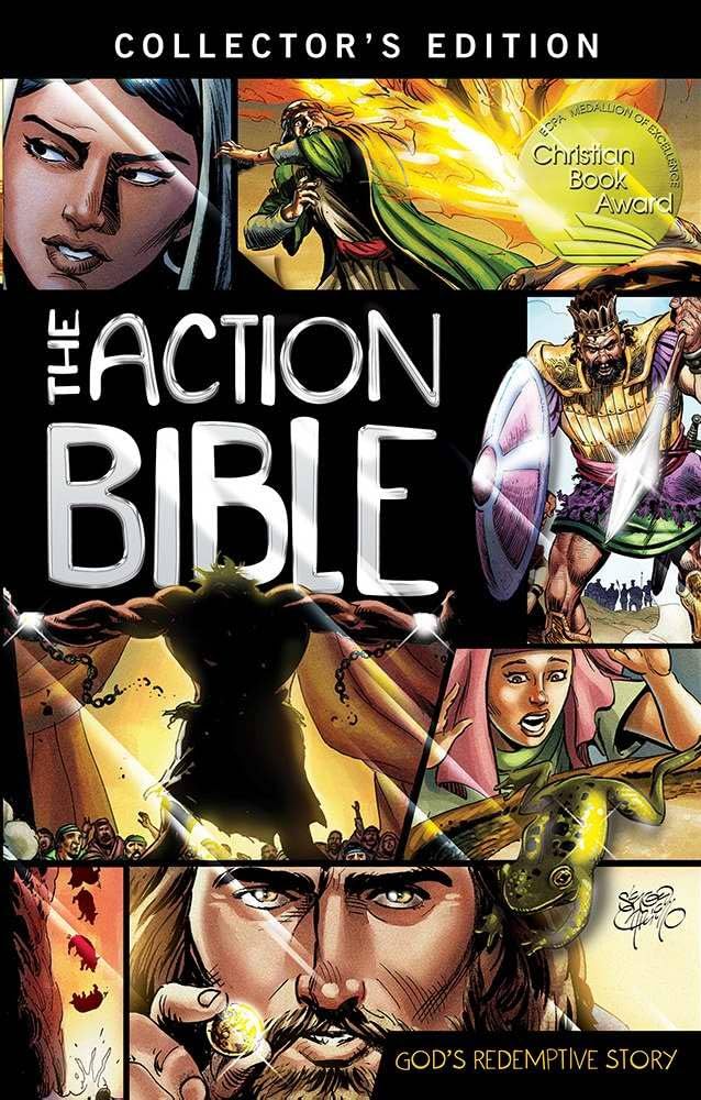 Celebrating more than one million copies sold of The Action Bible, this Collector&;s Edition features a dazzling premium chrome cover kids can’t resist as they dive into the action of God’s redemptive story. The Action Bible presents 215 fast-paced narratives in chronological order, making it easier to follow the Bible&;s historical flow&;and reinforcing the build-up to its thrilling climax. The stories in The Action Bible communicate clearly and forcefully to contemporary readers. This compelling blend of clear writing plus dramatic images offers an appeal that crosses all age boundaries. Brazilian artist Sergio Cariello has created attention-holding illustrations marked by rich coloring, dramatic shading and lighting, bold and energetic designs, and emotionally charged figures. Let this epic rendition draw you into all the excitement of the world&;s most awesome story.