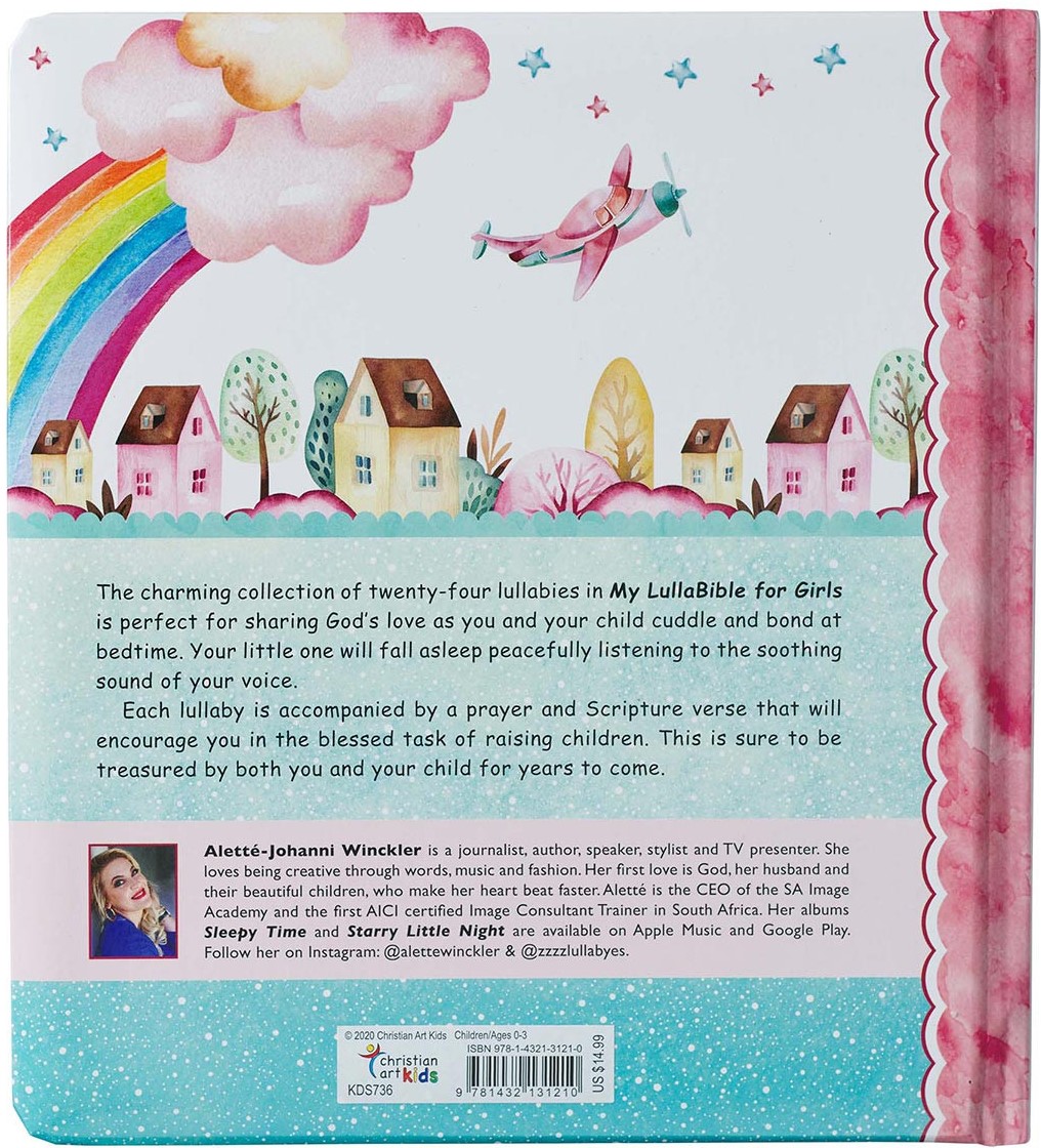 The charming collection of twenty-four original lullabies in My LullaBible for Girls is perfect for sharing God’s love as you and your child cuddle and bond. Your little one will fall asleep peacefully listening to the rhythmic lullabies and the soothing sound of your voice. Each lullaby is accompanied by a prayer and Scripture verse that will encourage you in the blessed task of raising children by creating loving bedtime memories for the first precious years of their lives.